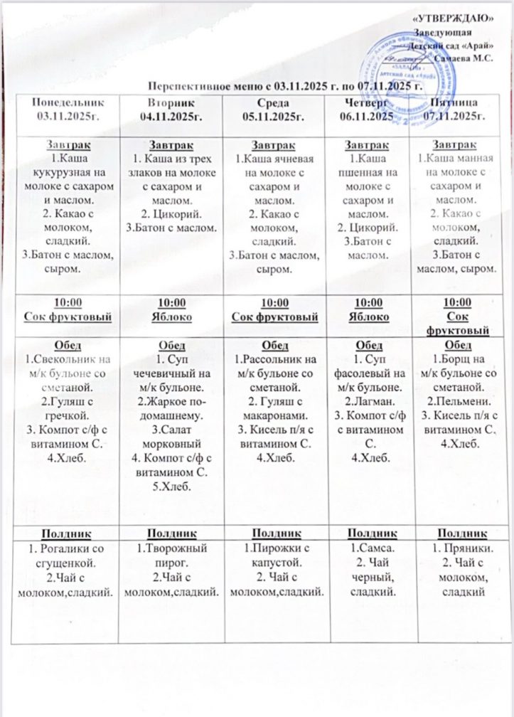 Ас мәзірі 03.11.2025