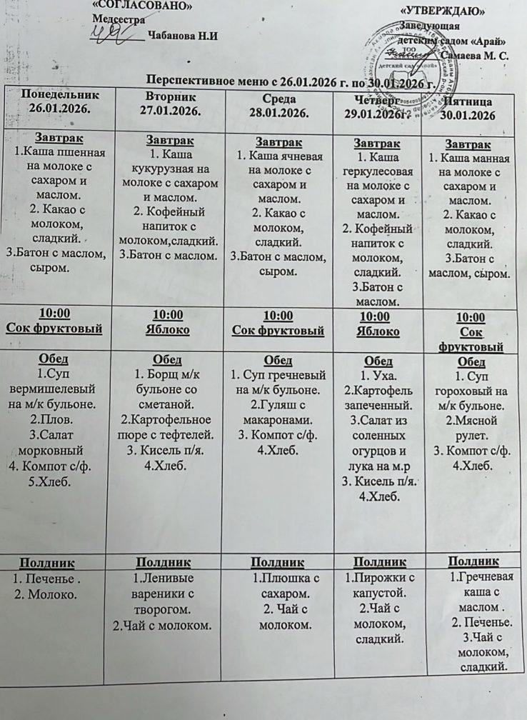 Ас мәзірі 26.01.2026