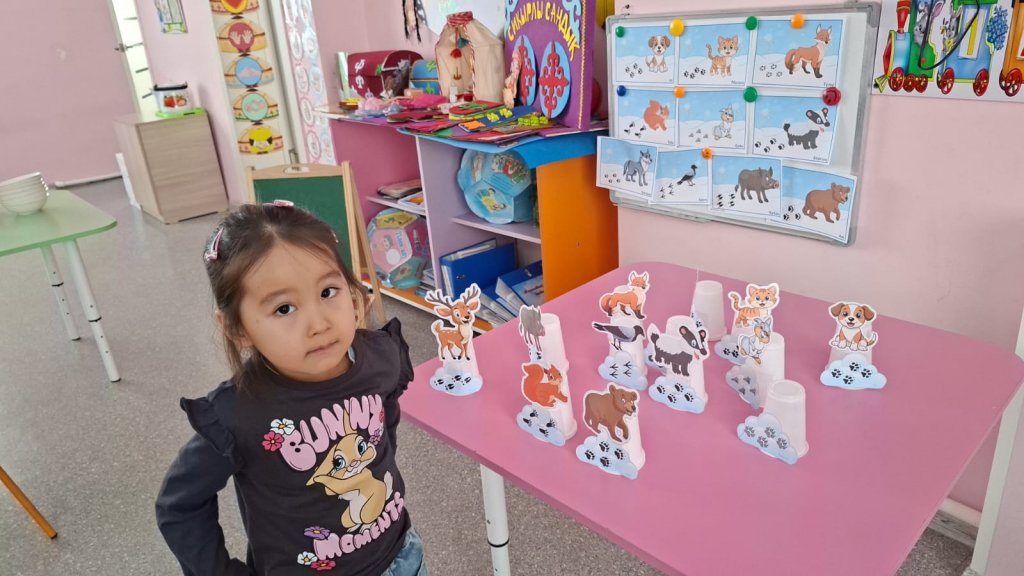 Ересек "Еркемай" тобының балалары "Қардағы іздер" ойынын ойнады. Ойынның мақсаты: Балалардың байқағыштығын дамыту. Логикалық ойлауын, салыстыру қабілетін жетілдіру. Қардағы жануарлар мен құстардың іздерін ажырата білуге үйрету.