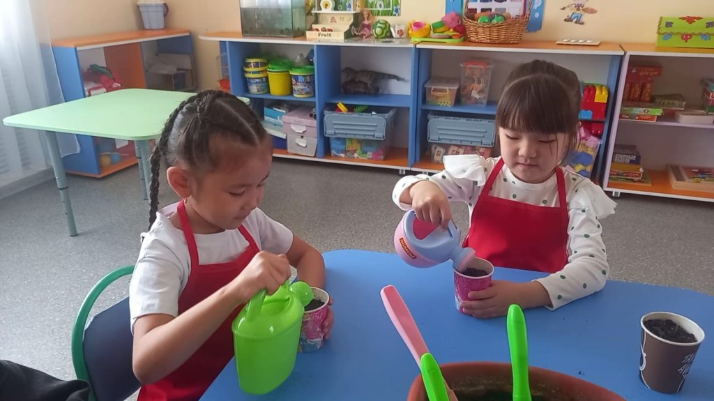 Балалар өсімдікті отырғызу тәсілімен танысты.