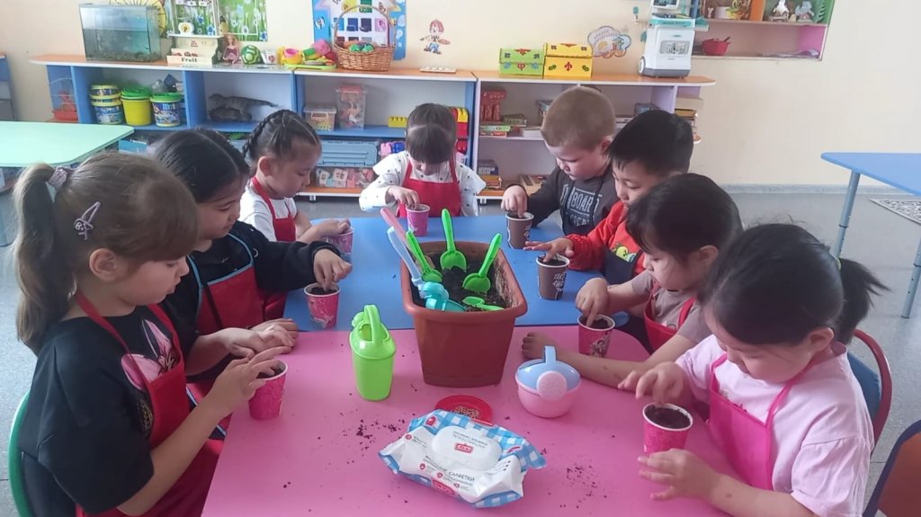 «Адал азамат» бағдарламасын іске асыру жоспарына сәйкес «Жасыл әлем» аясында «Фиксики» мектепалды даярлық тобының балалары қызанақ көшеттерін өсіру үшін тұқым отырғызды.